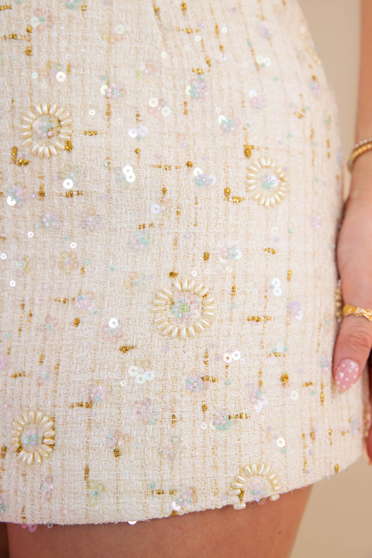 Ivory Tweed Matching Set- Ivory Beaded and Sequin Matching Set- Mable Ivory Tweed Set