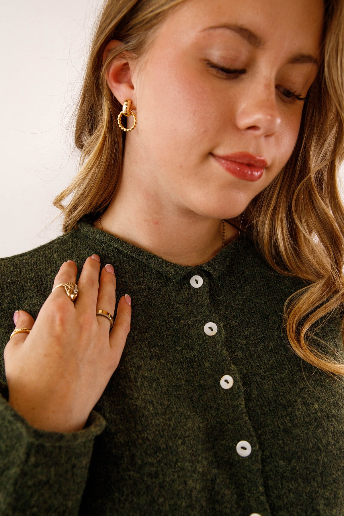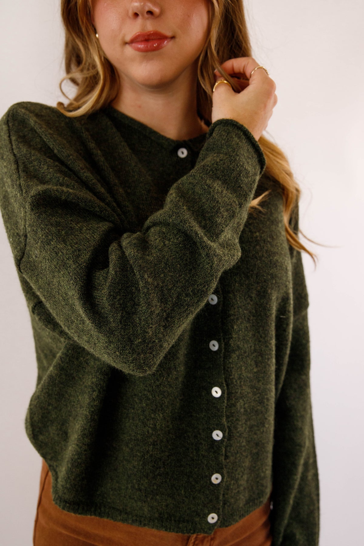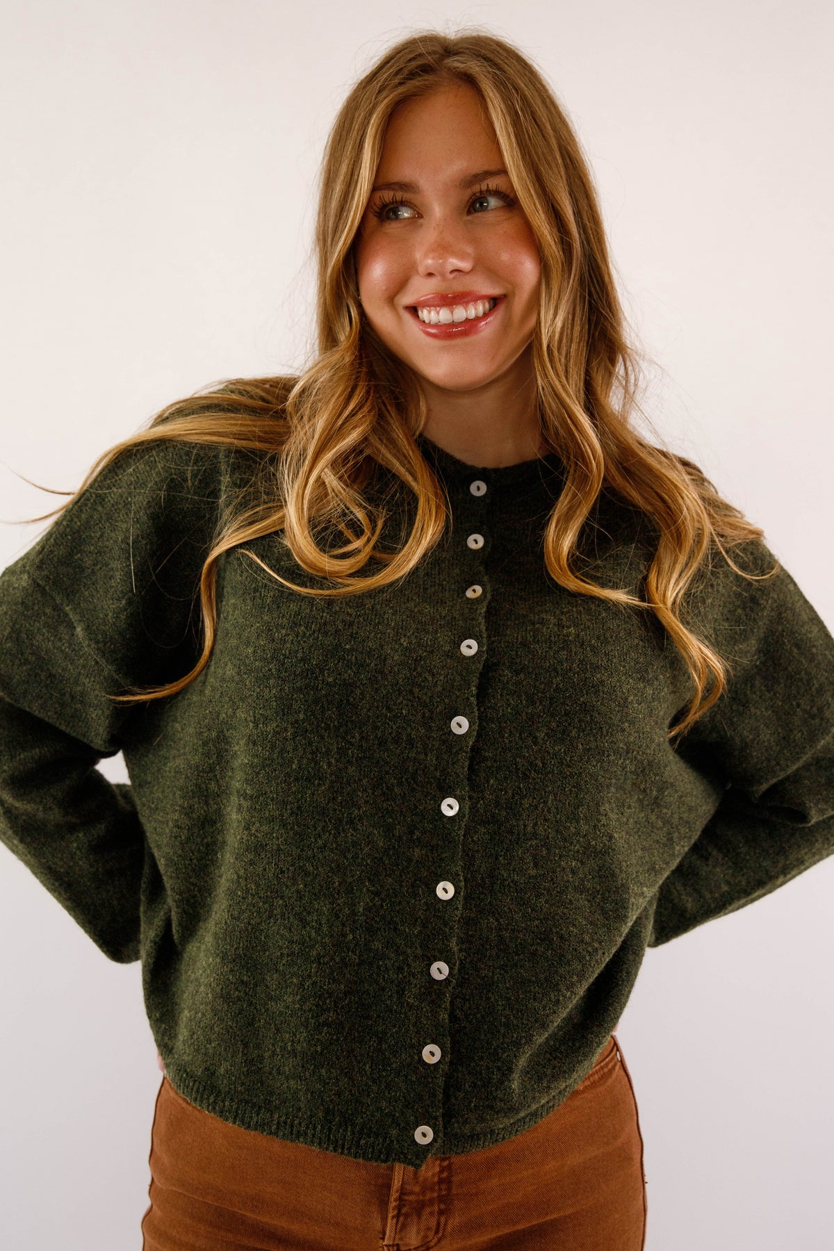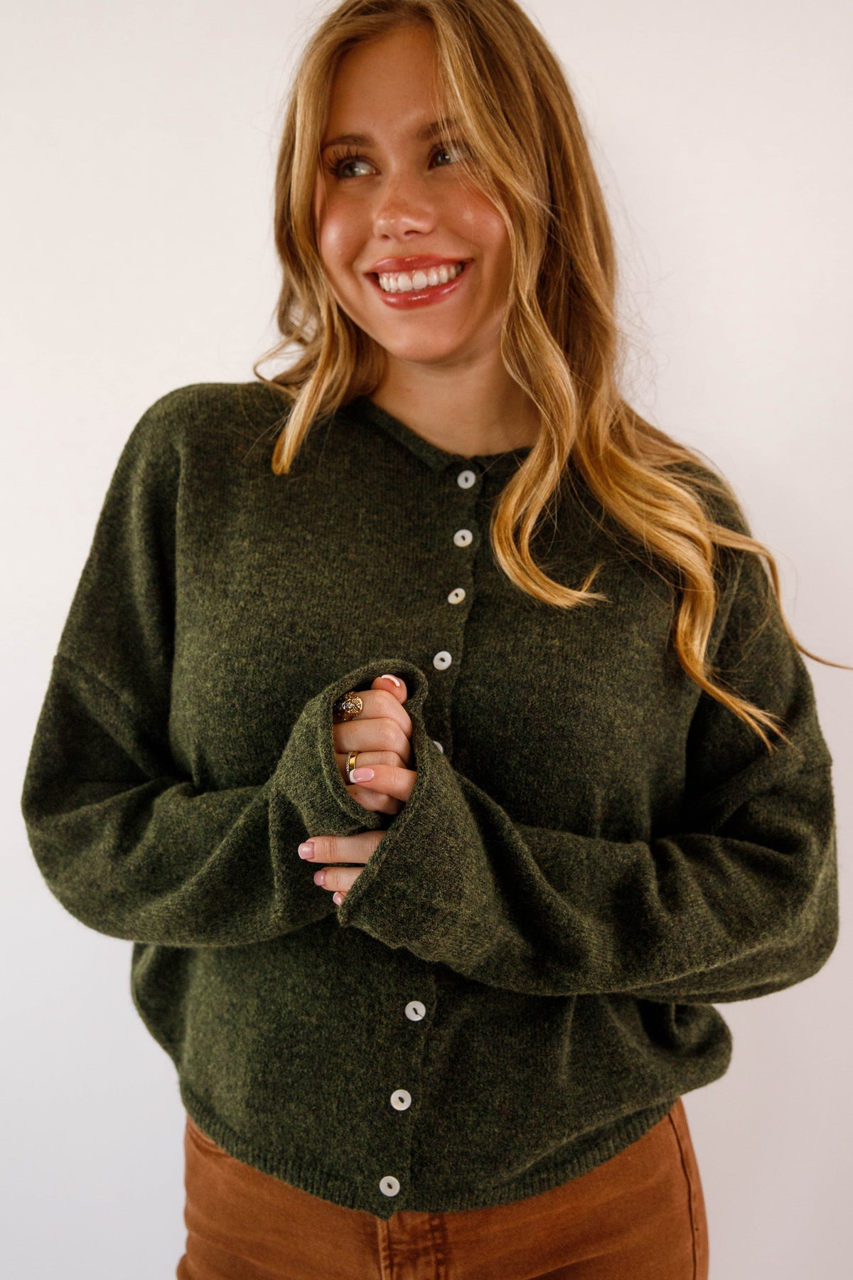 Discover the perfect layering essential with this Olive Cardigan, where thoughtful design meets everyday versatility. Rolled collar and cuffed sleeves add distinctive character, while the featherlight fabric drapes beautifully without bulk. The contemporary boxy cut flatters every frame, and strategically placed buttons give you complete control—wear it fully buttoned for structure or casually open for an effortless vibe. Whether you're dressing up basics or softening a bold outfit, this adaptable piece becomes an instant favorite in your rotation!