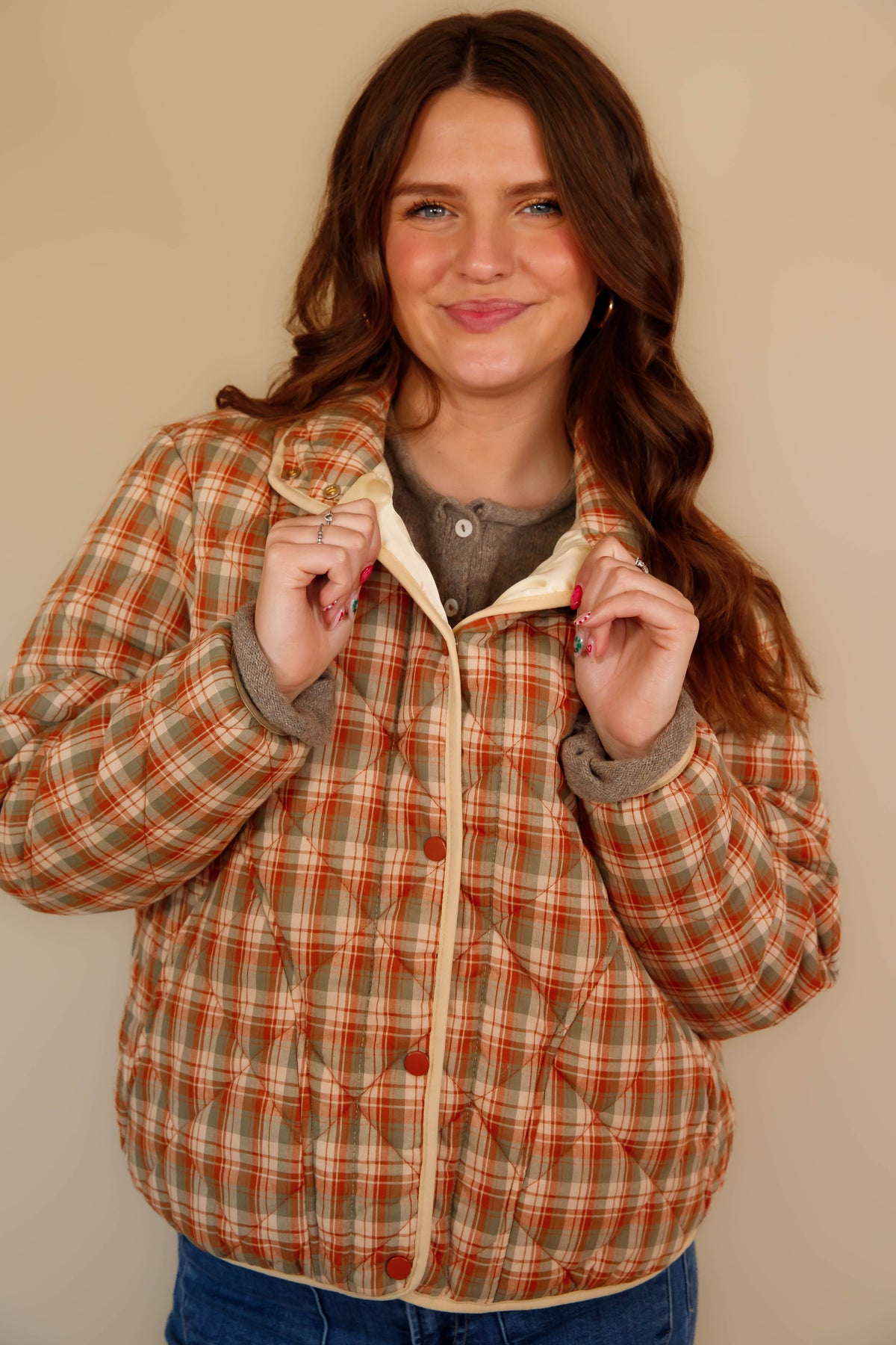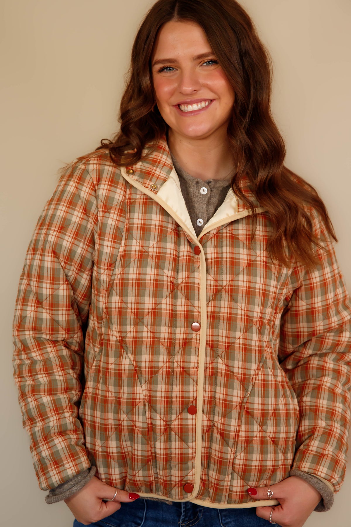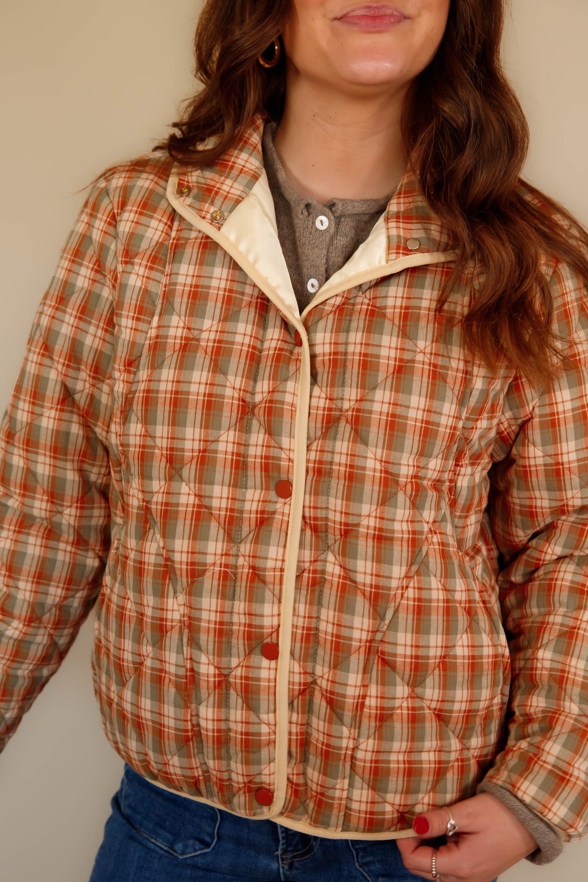 Embrace timeless style with this quilted jacket, featuring a charming vintage plaid pattern and refined piping details that elevate any outfit. The slightly oversized silhouette offers comfortable, flattering wear, while practical pockets keep your essentials within reach. Perfect for layering through seasons, this piece combines classic design with modern versatility!