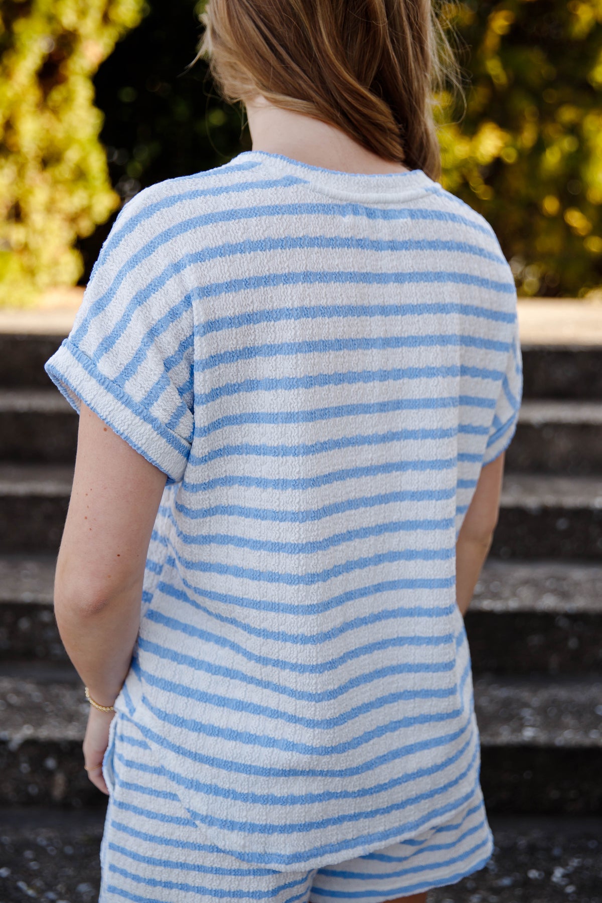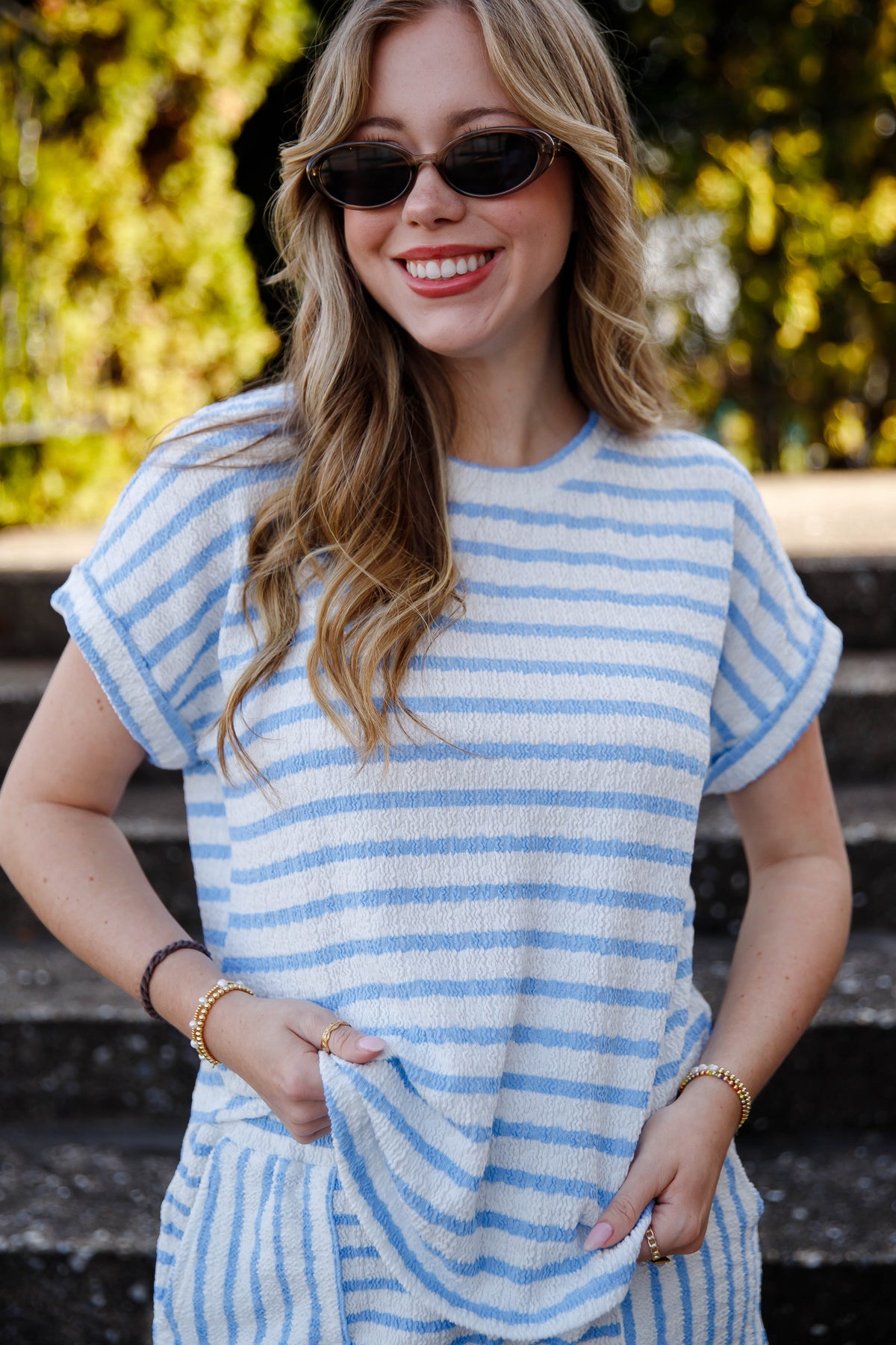 Effortless comfort meets relaxed style with these Coast is Clear Lounge Top. Crafted from lightweight striped gauze fabric, they feature a crew neck design and cuffed sleeves. It's a relaxed fit with a rounded hemline. Perfect for lounging at home or running errands in laid-back comfort.