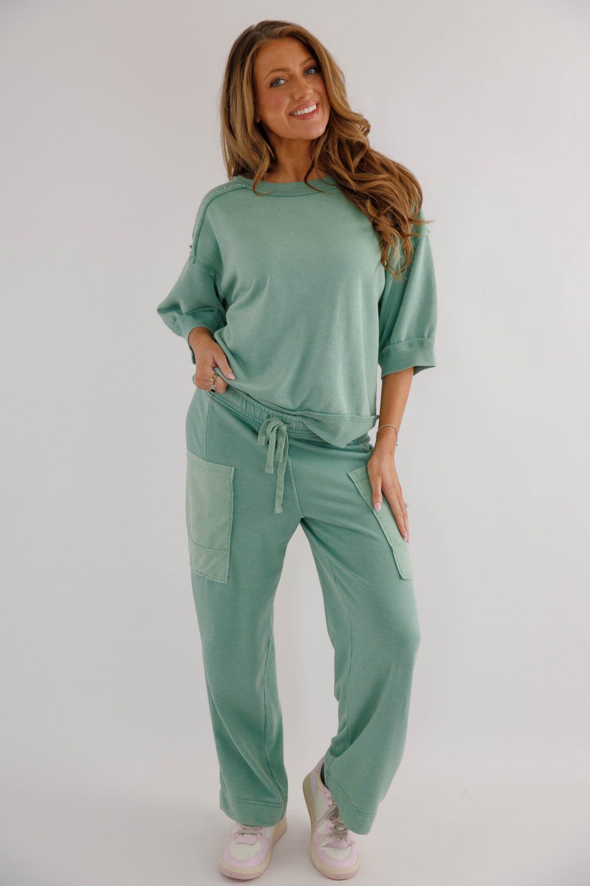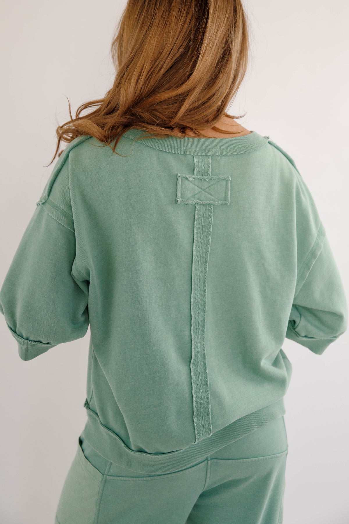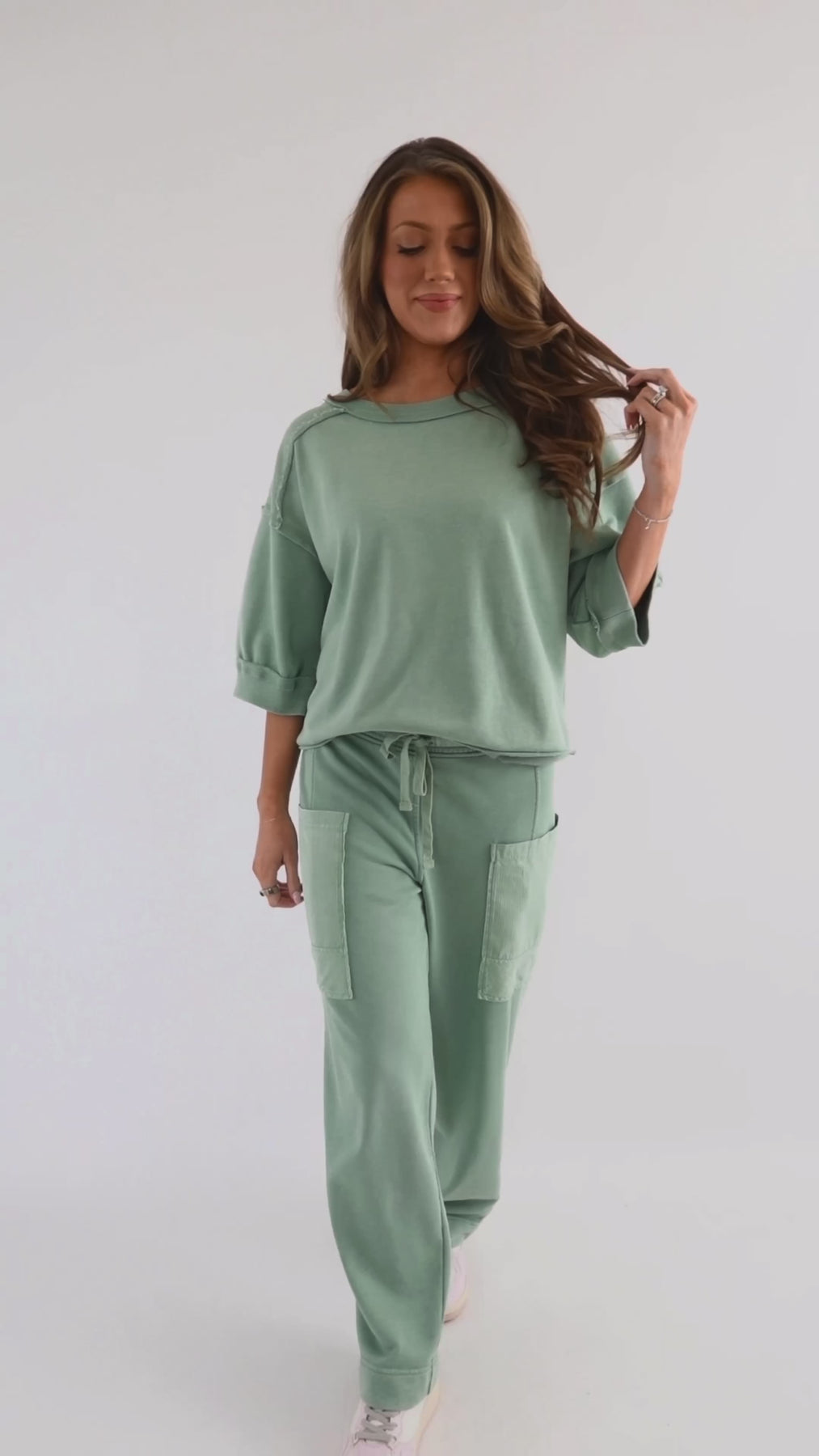 Effortlessly relaxed and perfectly lived-in, this mineral washed French terry top brings easygoing style to your everyday wardrobe. Crafted from soft French terry fabric, this athleisure pullover features a comfortable relaxed fit that drapes naturally for that casual, off-duty look. The vintage-inspired mineral wash gives the top a soft, worn-in feel, while raw edge details and exposed seams add subtle texture and a modern laid-back edge. Designed with a loose, oversized silhouette and comfortable sleeves, this versatile top pairs perfectly with leggings, lounge shorts, denim, or matching athleisure sets.
