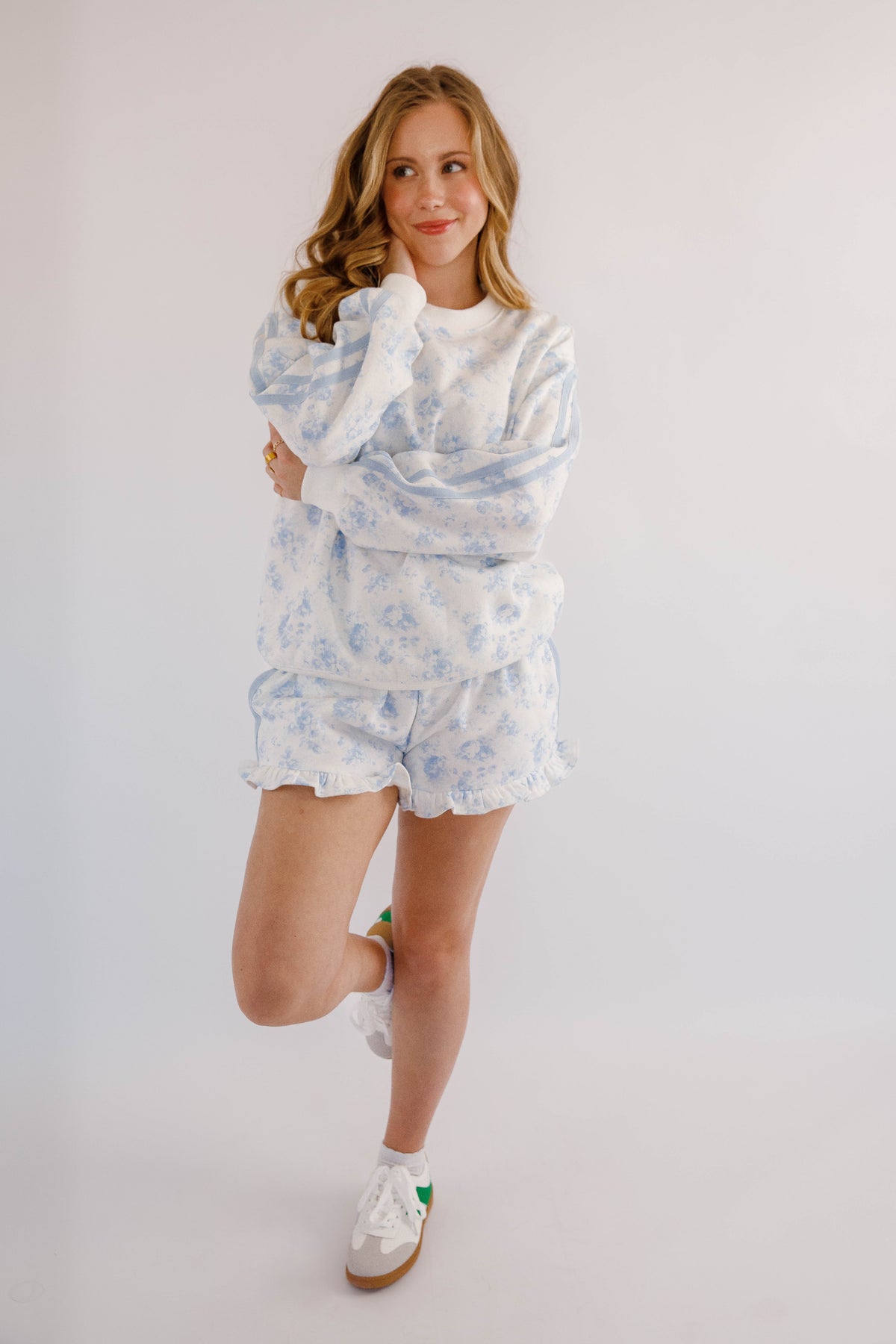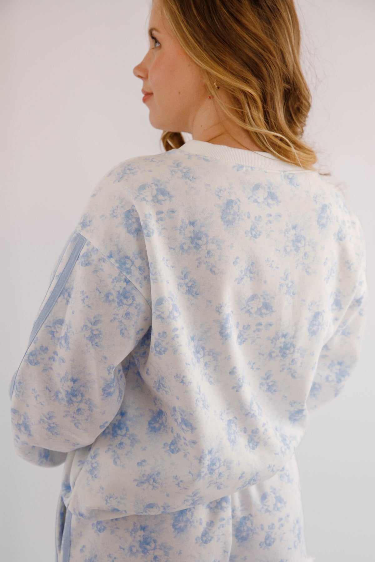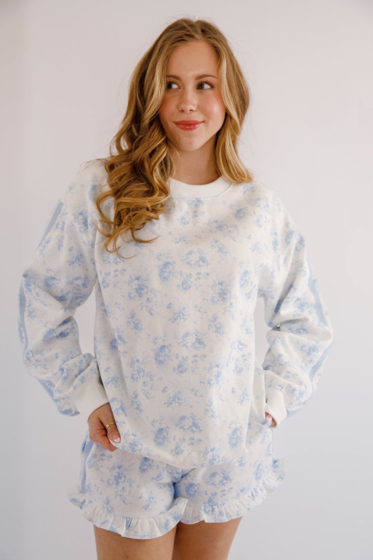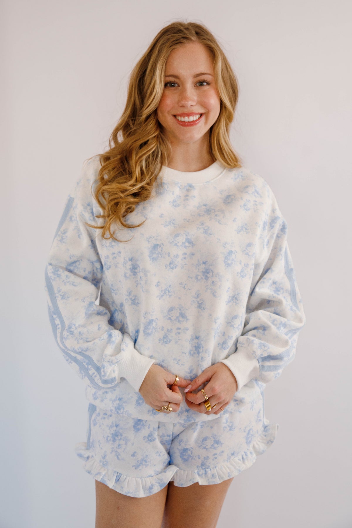 Blue Floral Pullover- Matching Floral Pullover and Shorts- Peach Love Cream Floral Lounge Set