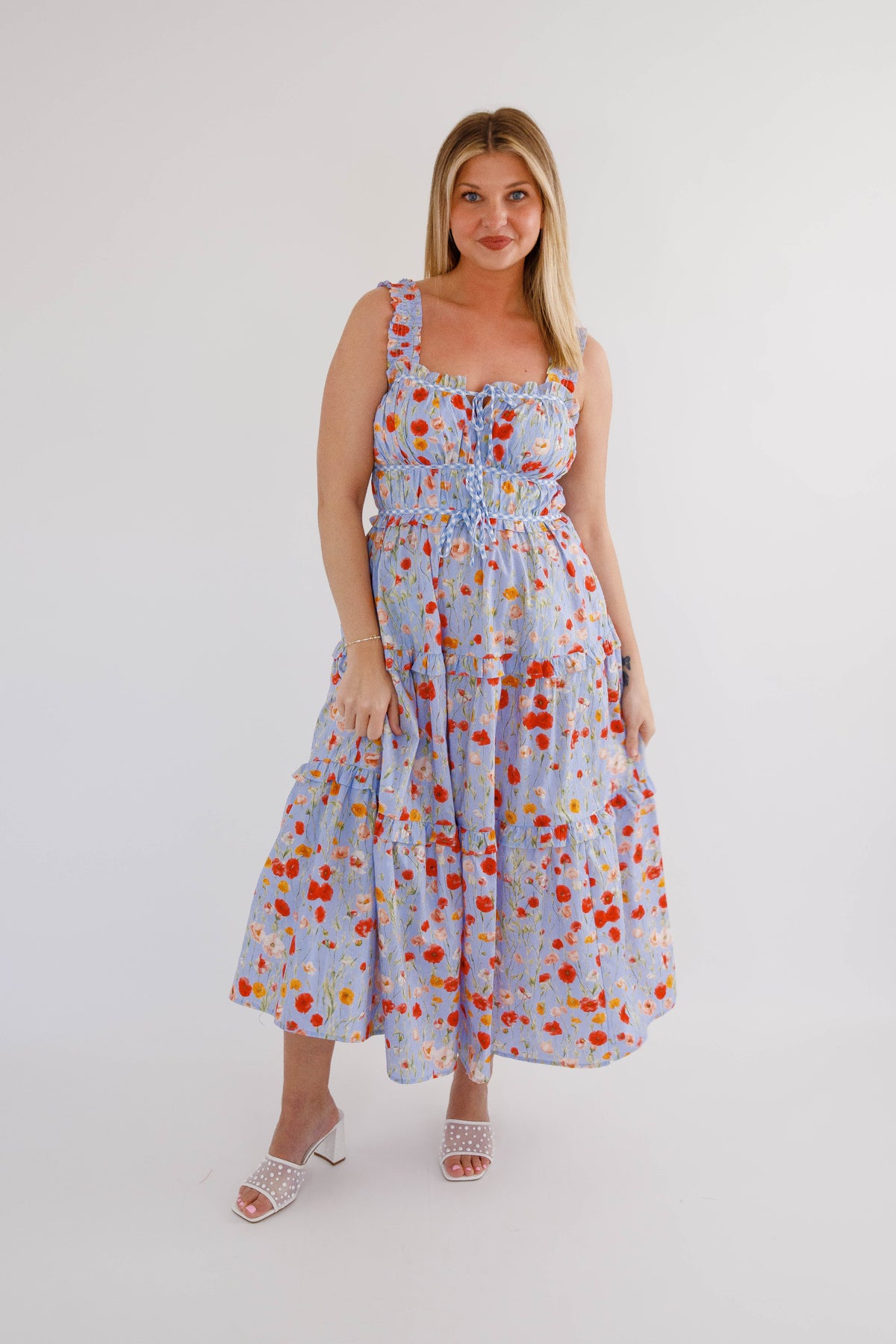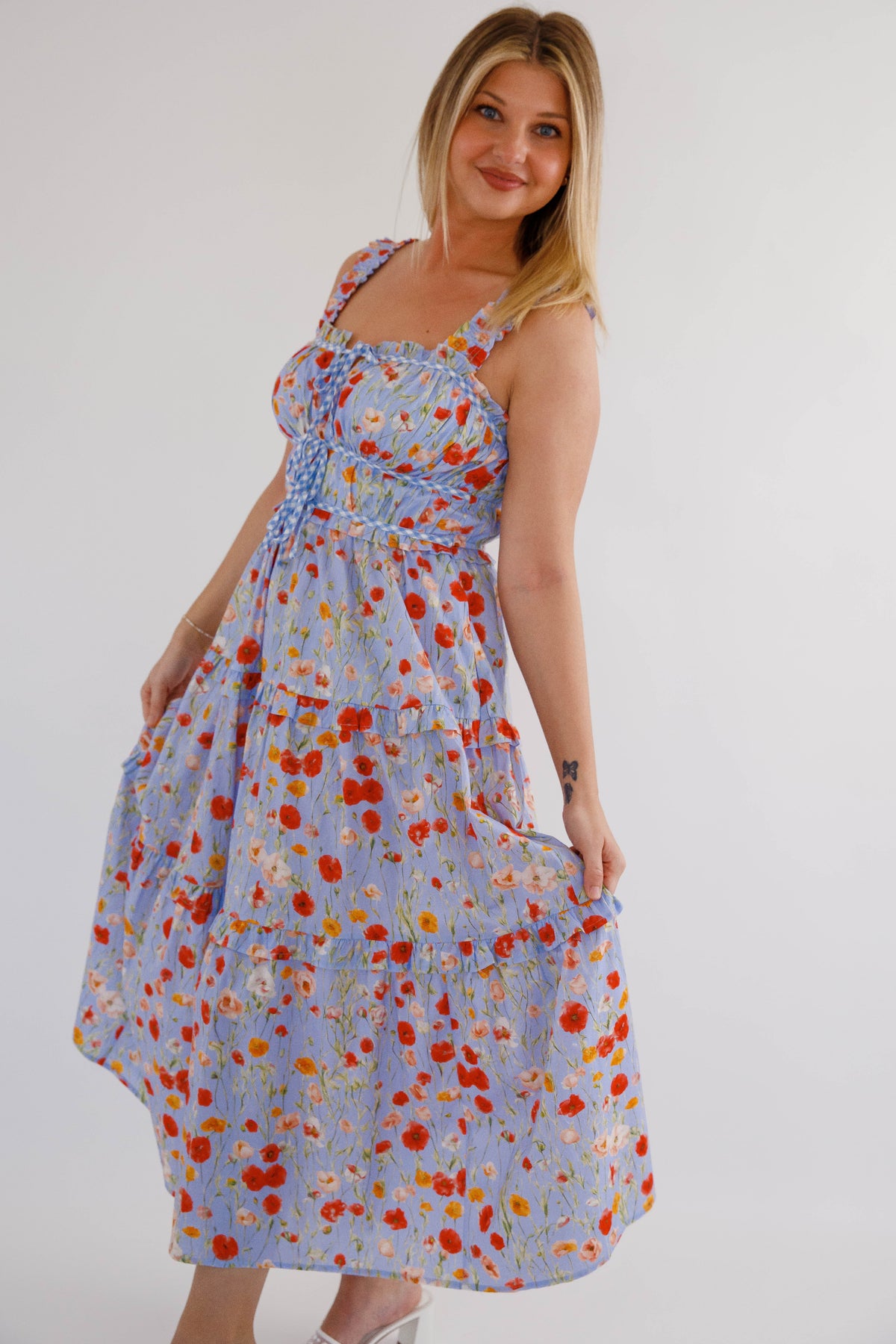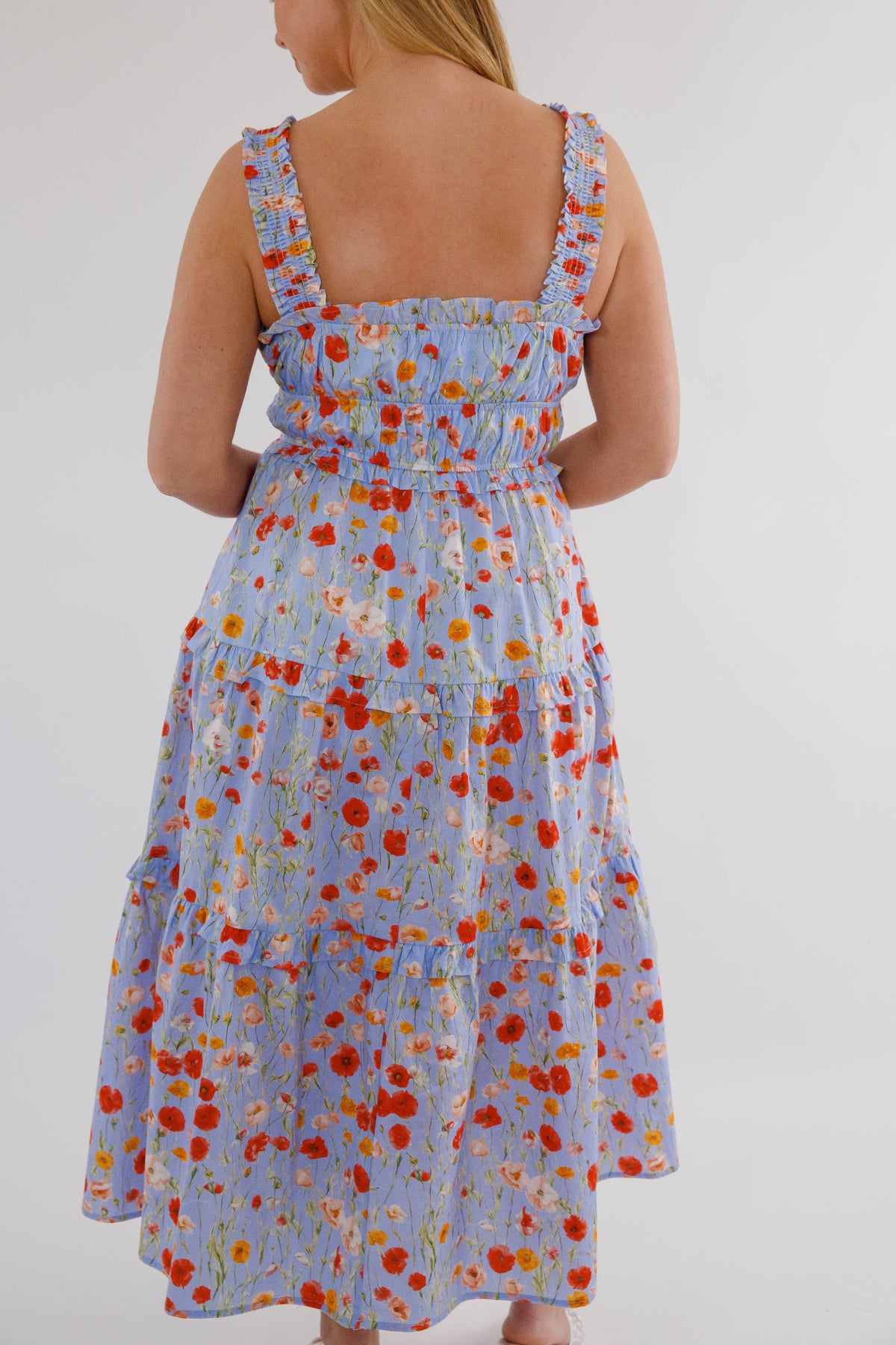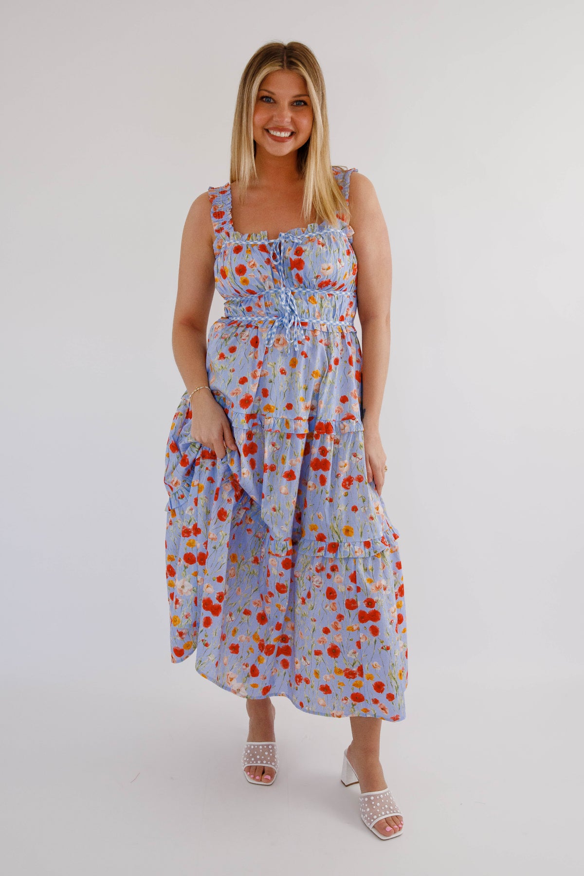 Elevate your wardrobe with our A Spring Invitation Midi Dress! Made with soft cotton and adorned with colorful florals, this comfortable dress is perfect for a day out. The three-tiered empire waist, bow tie detailing, and functional pockets add a touch of elegance while the midi length and ruffle tiers enhance the feminine silhouette.