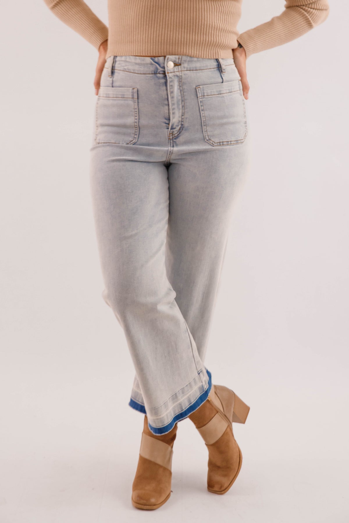 Upgrade your denim game with our Faded Details Denim! Featuring a mineral wash and unique raw hem, these straight leg pants are a must-have. With functional pockets and a button and zipper closure, these jeans are as practical as they are stylish. Elevate your wardrobe today!