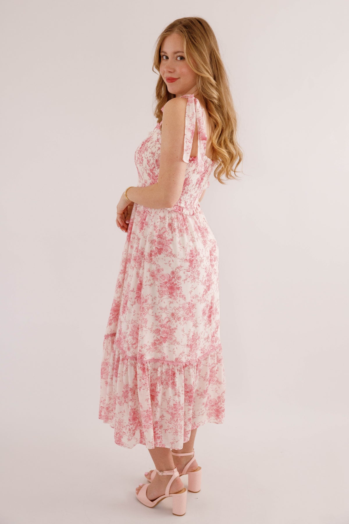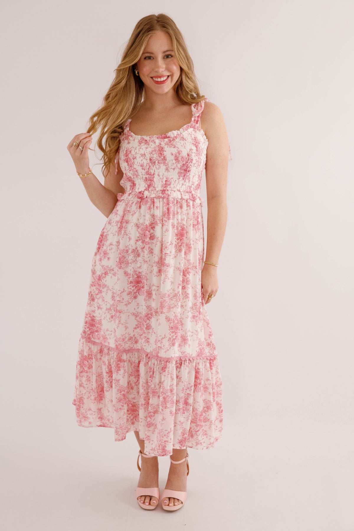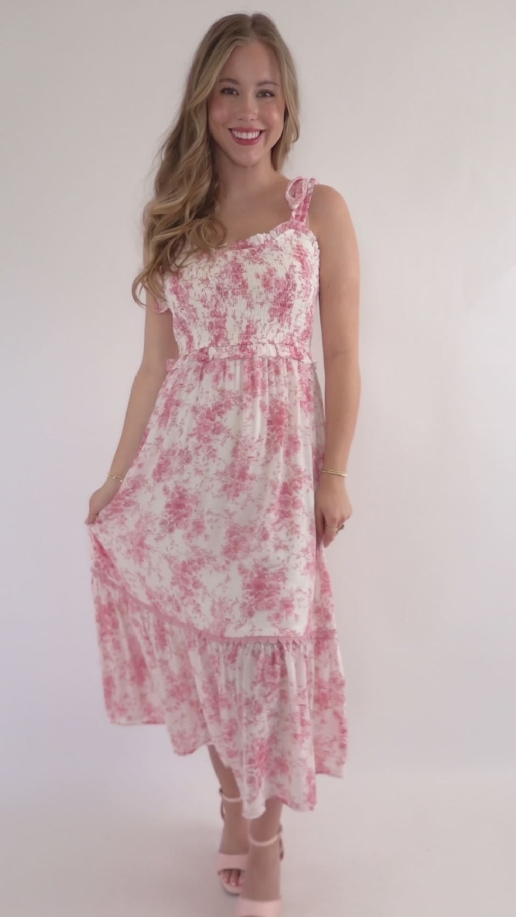 Elevate your style in the Like A Wish Midi Dress! Featuring a charming sweetheart neckline, smocked bodice for a flattering fit, and self-tie straps. The ruffle trim and scallop details add a touch of romance, while the floral print and midi length make it perfect for any occasion. Lined for comfort. Make a wish and make it yours today!