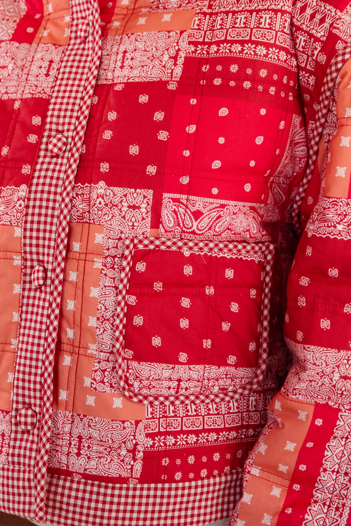 Red Bandana Quilted Jacket- Bandana Patch Work Quilted Jacket- &Merci Red Quilted Jacket