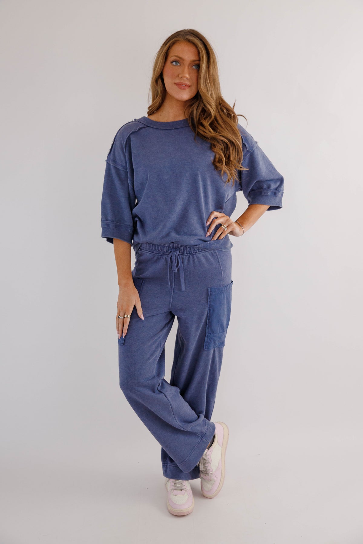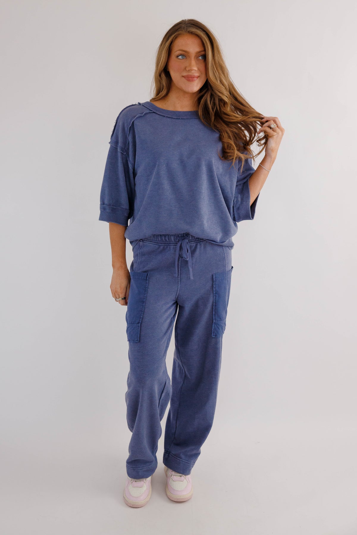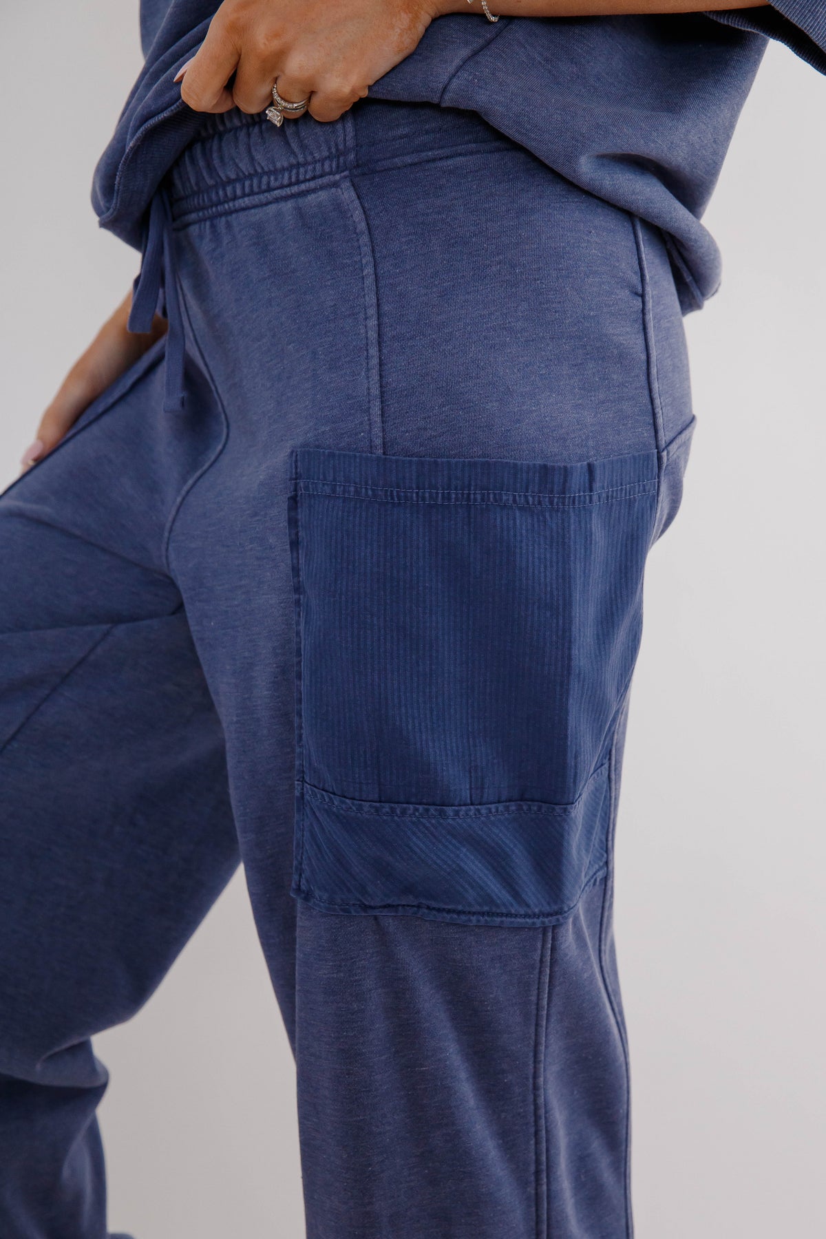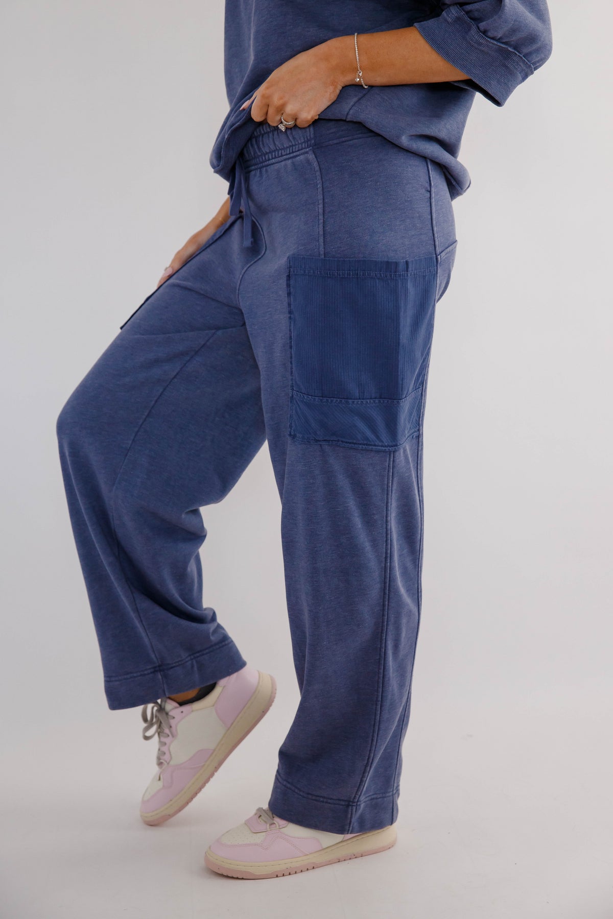 Easy, comfortable, and effortlessly stylish, these sage cargo lounge pants are the perfect blend of athleisure comfort and everyday versatility. Designed with a relaxed wide-leg silhouette, these cropped soft lounge pants feature a comfortable elastic waistband with an adjustable drawstring for the perfect fit. Functional cargo-style patch pockets add a casual, utility-inspired detail while keeping the look modern and laid-back.