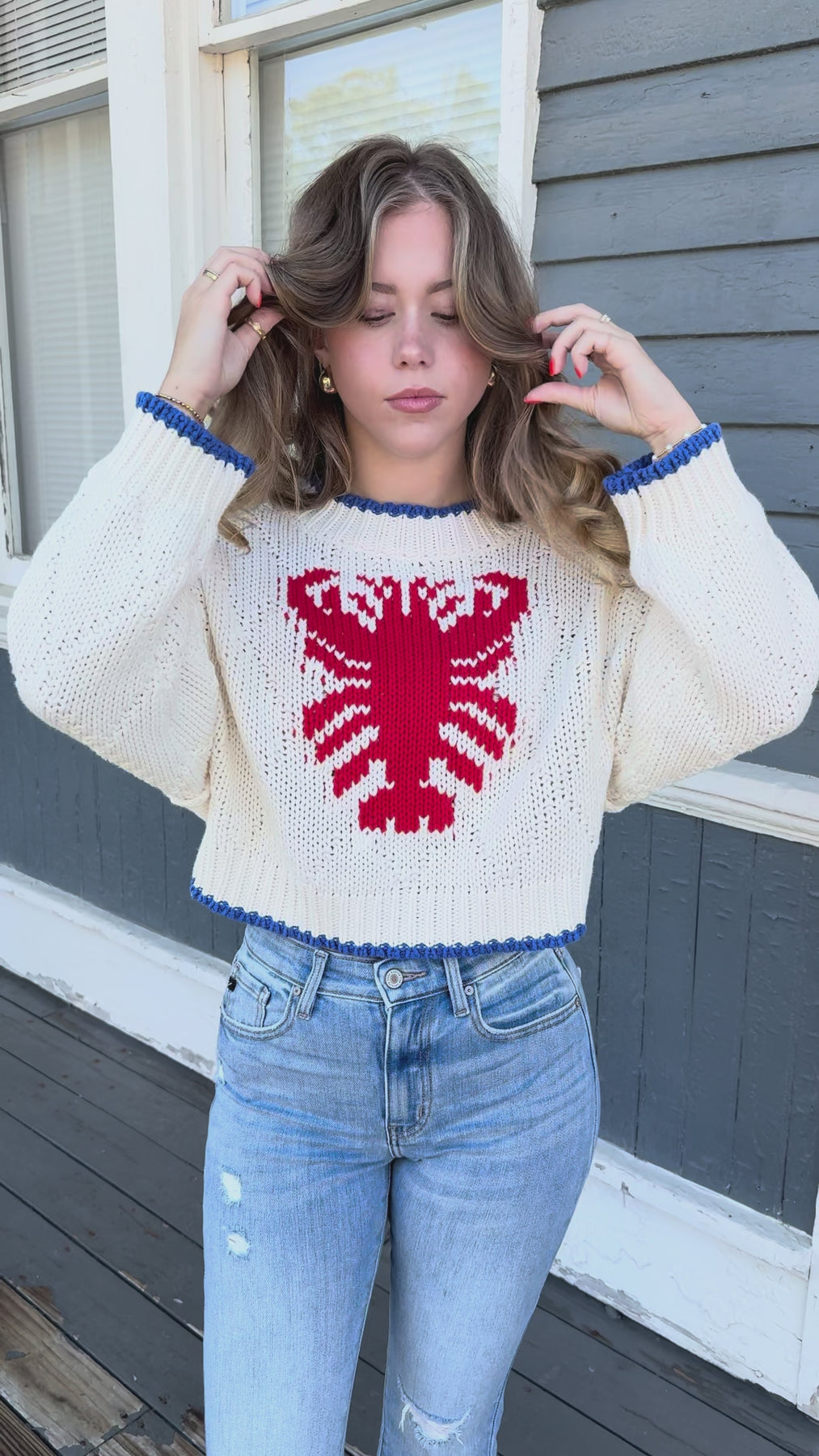 Preppy Coastal Sweater- Knitted Lobster Sweater- Eesome Lobster Sweater
