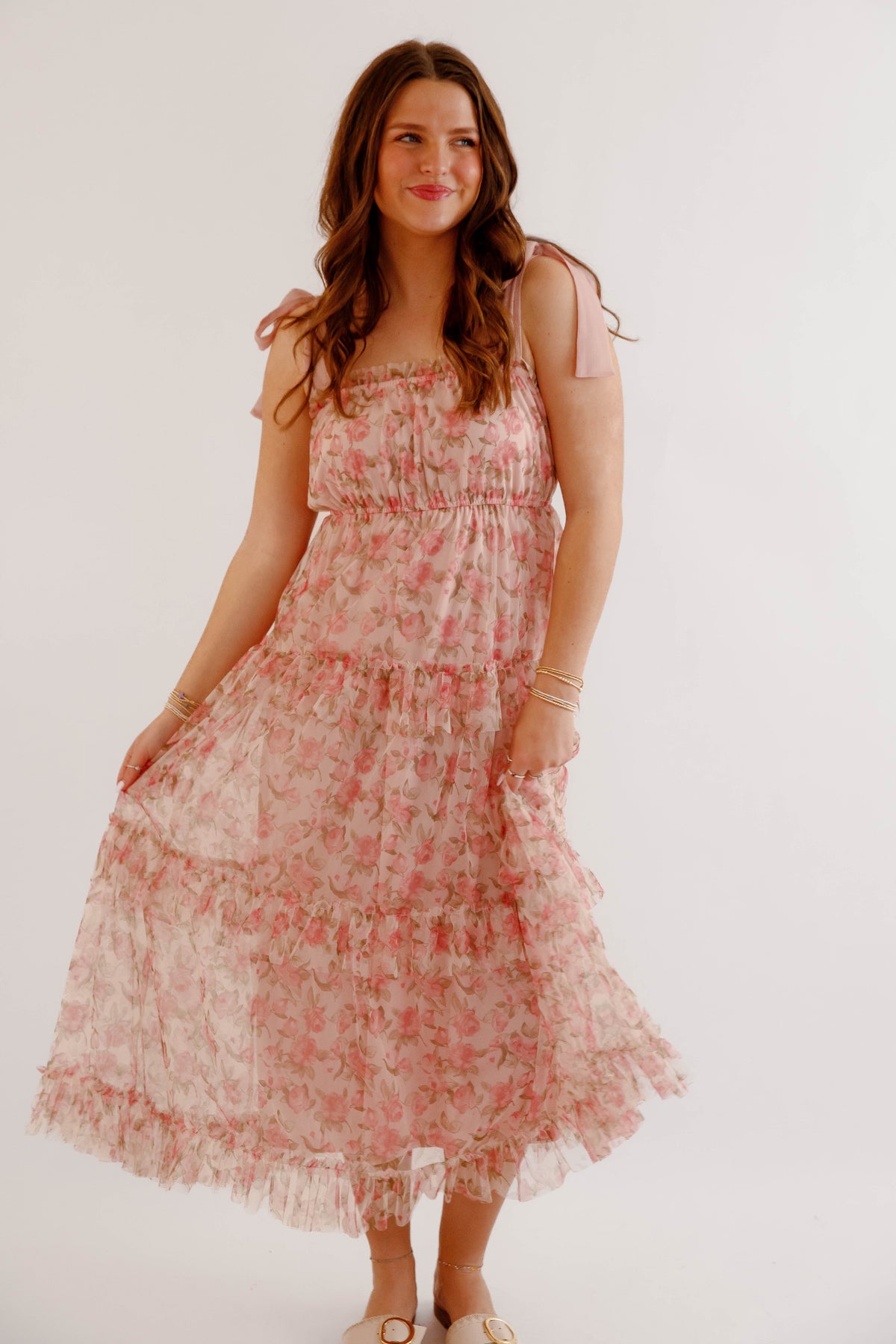 Experience effortless elegance in our There's Something So Sweet Maxi Dress. Featuring a square neckline, wide shoulder strap tie, and allover floral print, this sleeveless midi dress boasts a flattering A-line shape with tiered detailing. Simply pull it on and embrace the beauty of the floral print!
