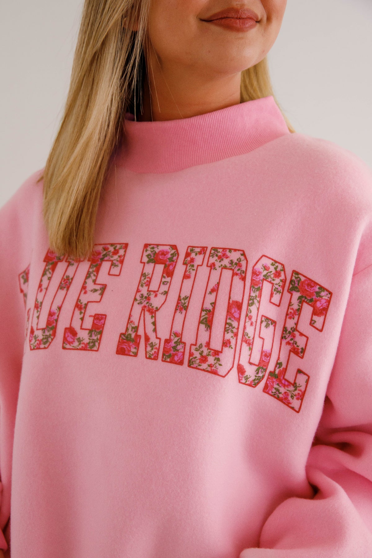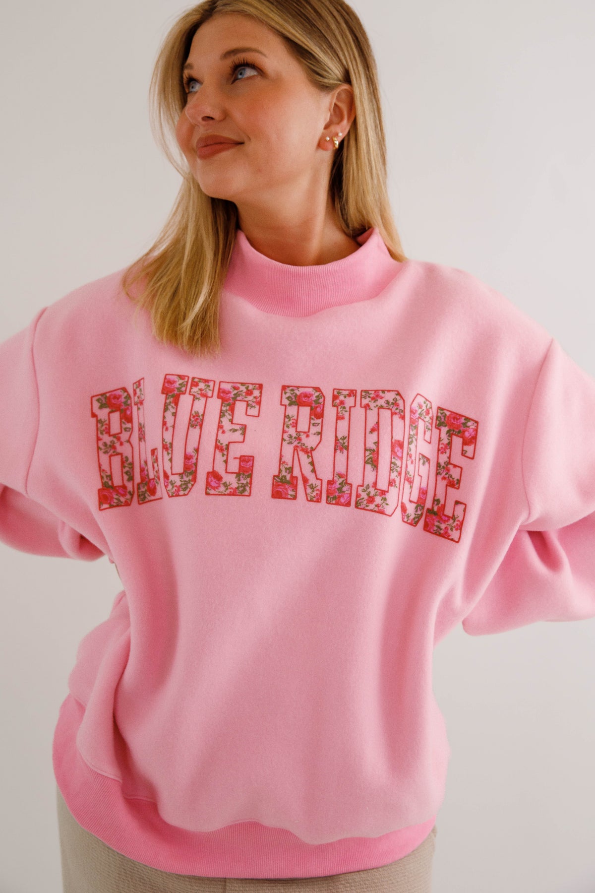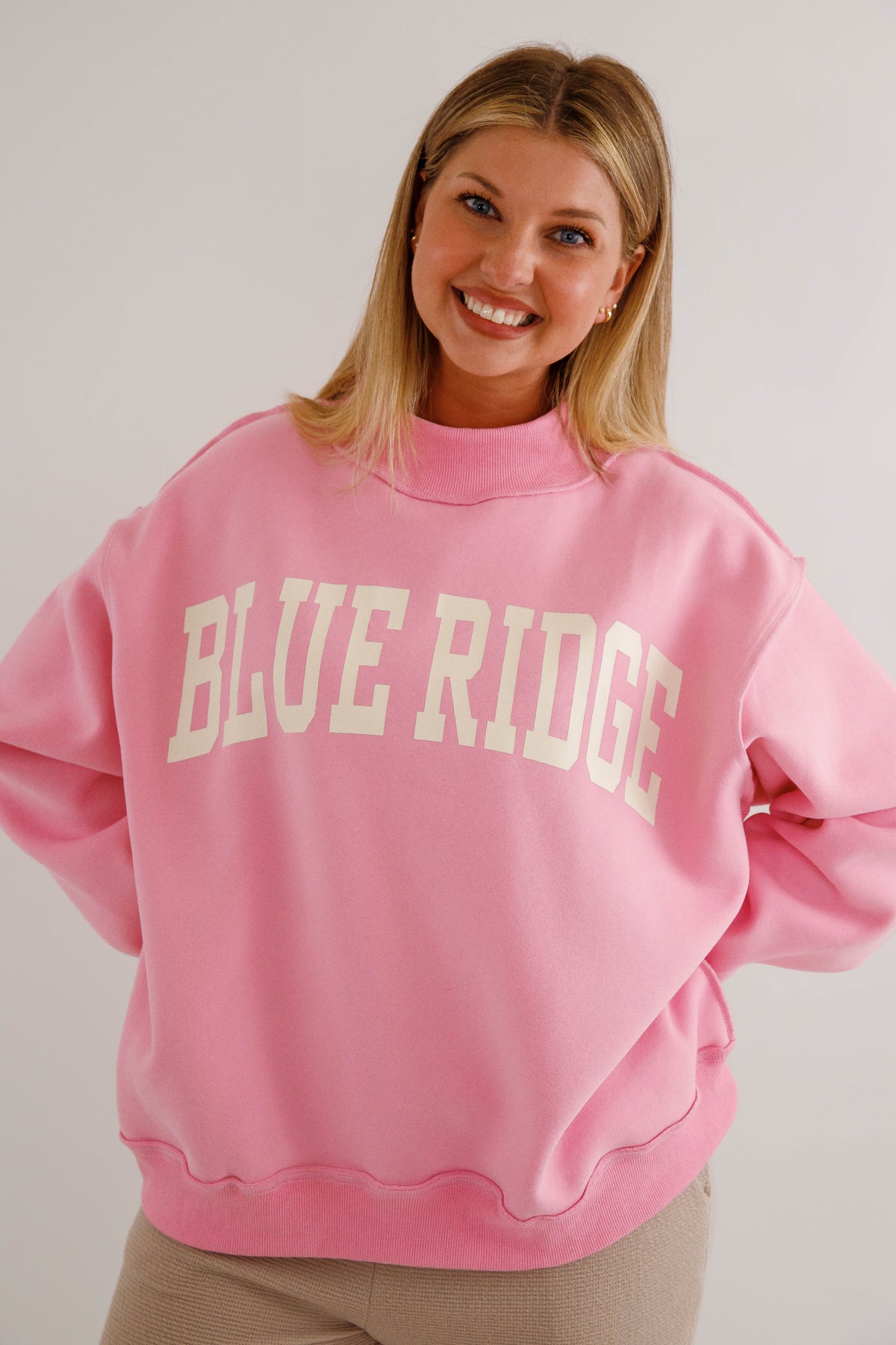 An in-store BEST SELLER! Slip into pure comfort with this oversized mockneck sweatshirt featuring the sweetest bubblegum pink and a reversible "Blue Ridge" design. Crafted from the softest fleece imaginable, it's designed for maximum coziness with drop shoulders, long sleeves, and rib-banded cuffs and hemline that keep everything in place. Whether you're staying cozy at the cabin, or a local just vibing in style, this best-selling favorite brings effortless charm and a sunny disposition to your everyday rotation!