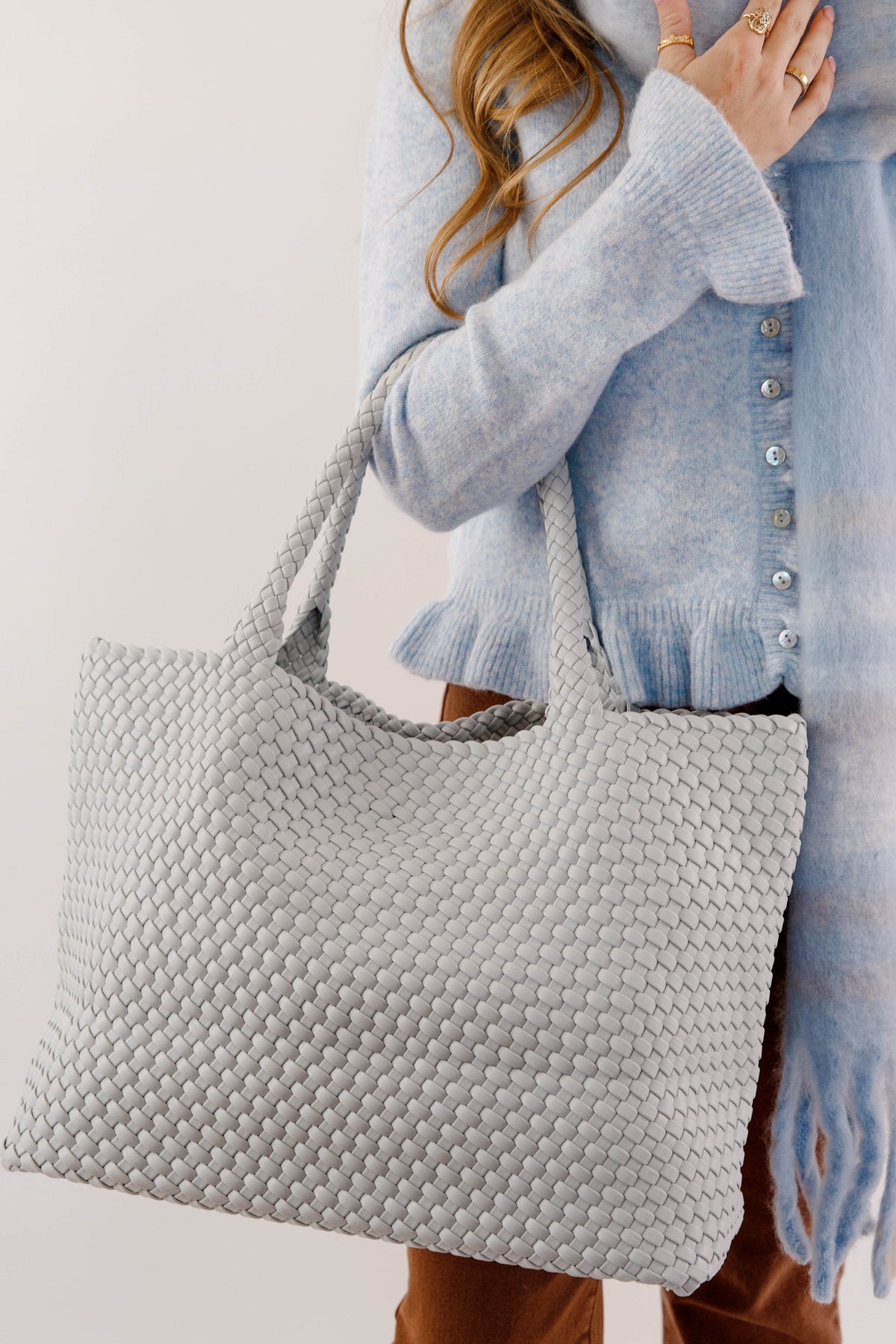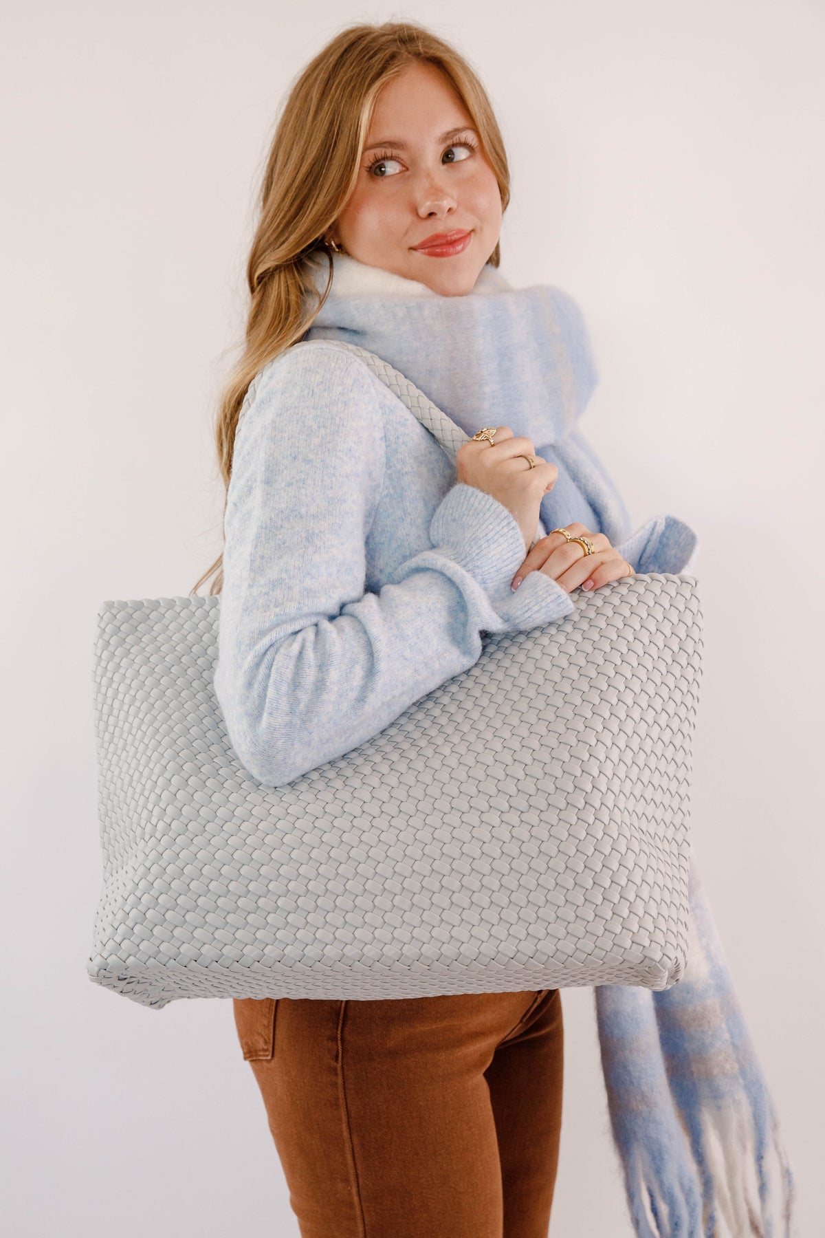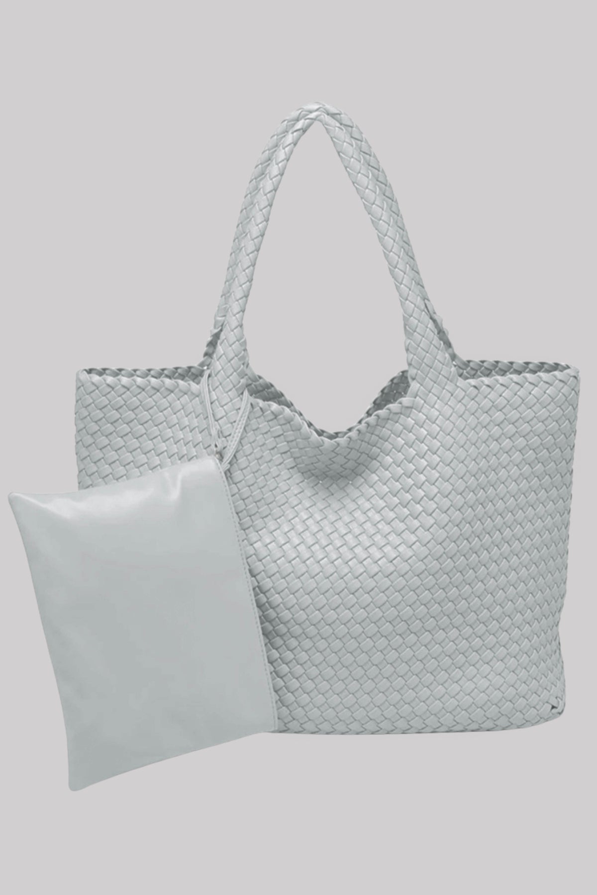 The perfect tote for all of your needs! Crafted with luxurious and lightweight vegan leather, this bag features a woven all-over and a magnetic closure to keep your belongings safe and secure. The inside is unlined and comes complete with an added zipper pouch for some extra storage that can also be used as a hanging accessory. With a handle drop measuring 10”, you will never lose your grip while on the go. Do yourself a favor and get your hands on the effortlessly chic Carry It All Tote Bag today!