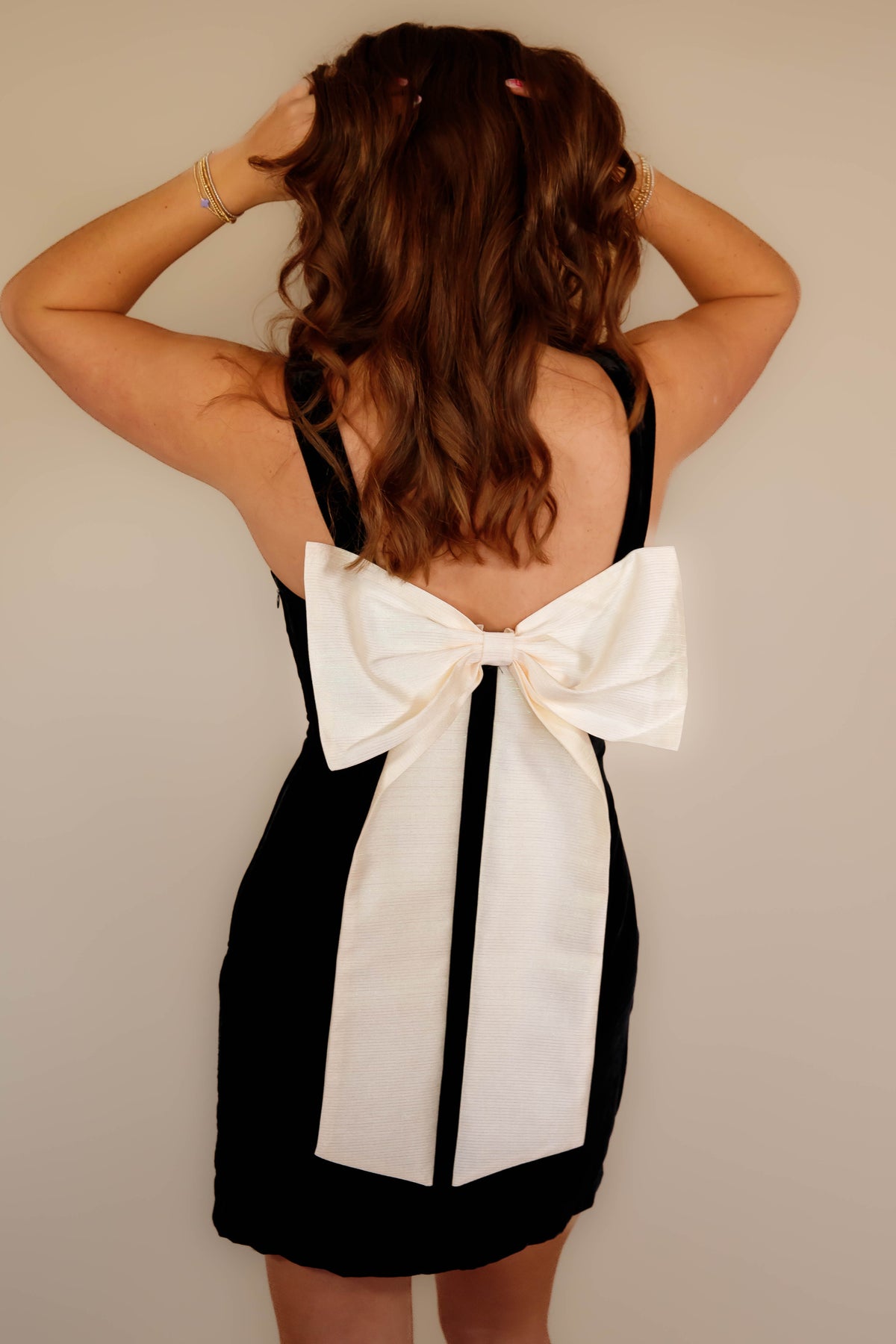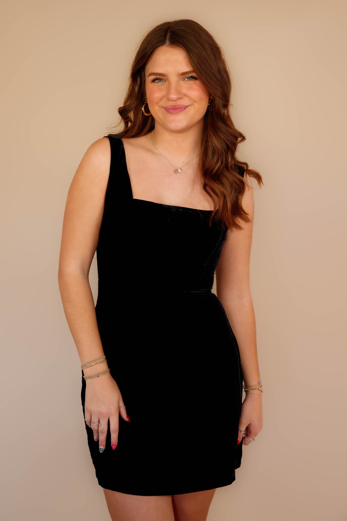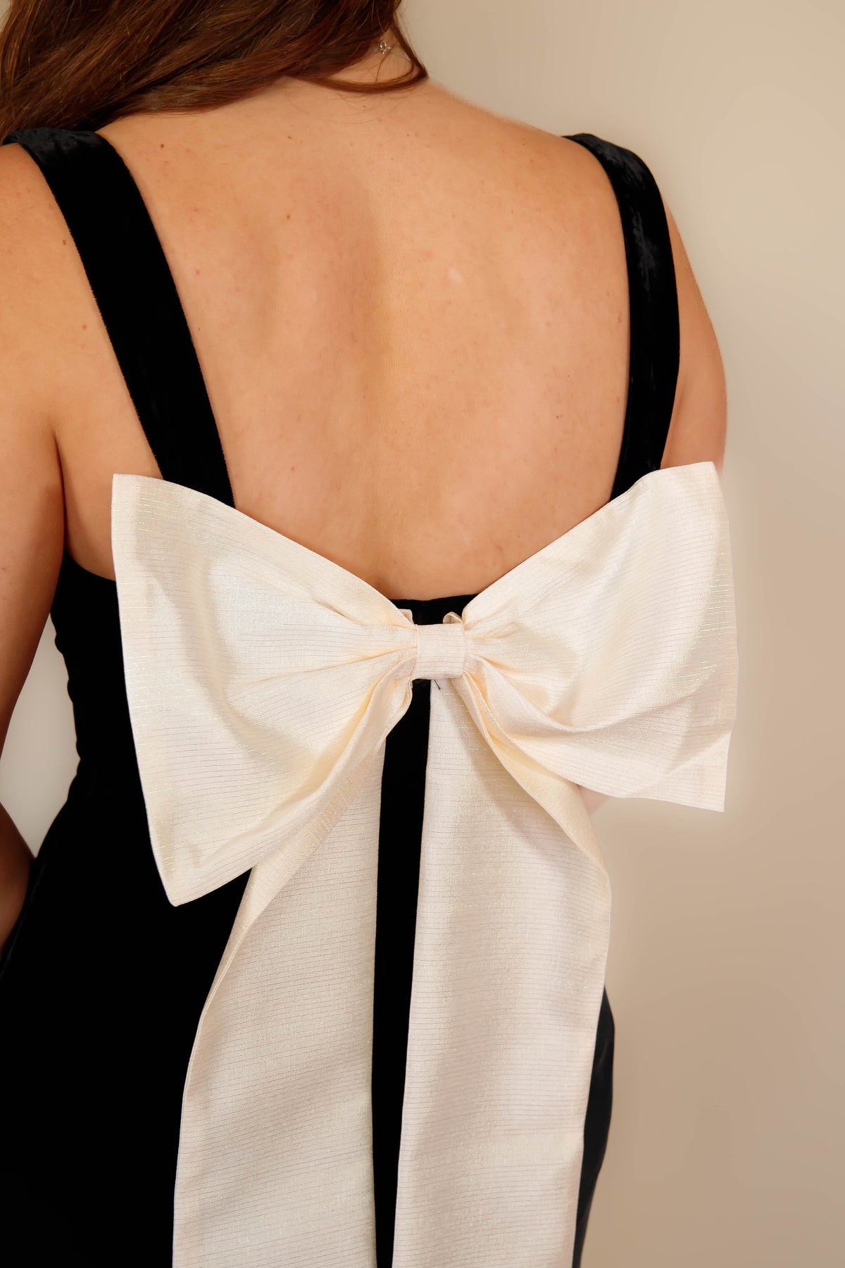 Make an unforgettable entrance in this exquisite velvet mini dress! The sumptuous velvet fabric feels as luxurious as it looks, while the square neckline frames your shoulders with timeless elegance. Sleeveless styling offers versatility—layer it with a blazer for sophistication or wear it bare for bold confidence. The real showstopper? A striking contrast bow detail adorning the back, ensuring you'll turn heads from every angle. In classic black, this dress transitions seamlessly from holiday parties to weekend celebrations. Whether you're dressing up for a special night out or want to feel extraordinary, this piece delivers the polish and personality that sets you apart!