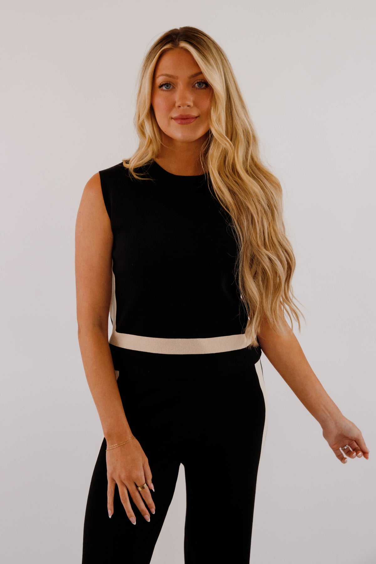 Made from luxuriously soft ribbed fabric, the New Connections Lounge Top features a chic two-tone black and taupe contrast trim that instantly elevates your style. Its sleeveless, slightly cropped cut offers a flattering fit perfect for layering or warm days. Designed for effortless wear, this top simplifies your wardrobe and keeps you looking polished while traveling or running errands. Embrace comfort and style in one versatile piece.