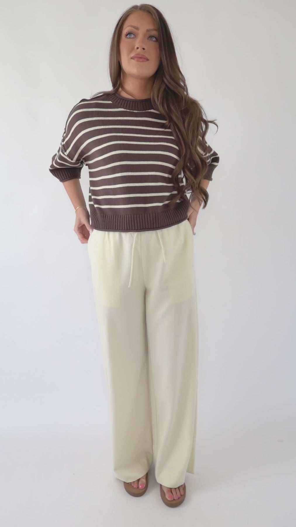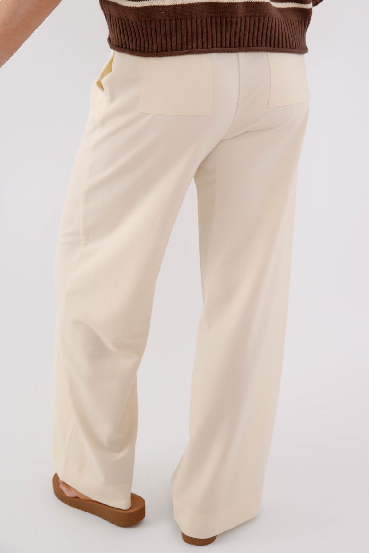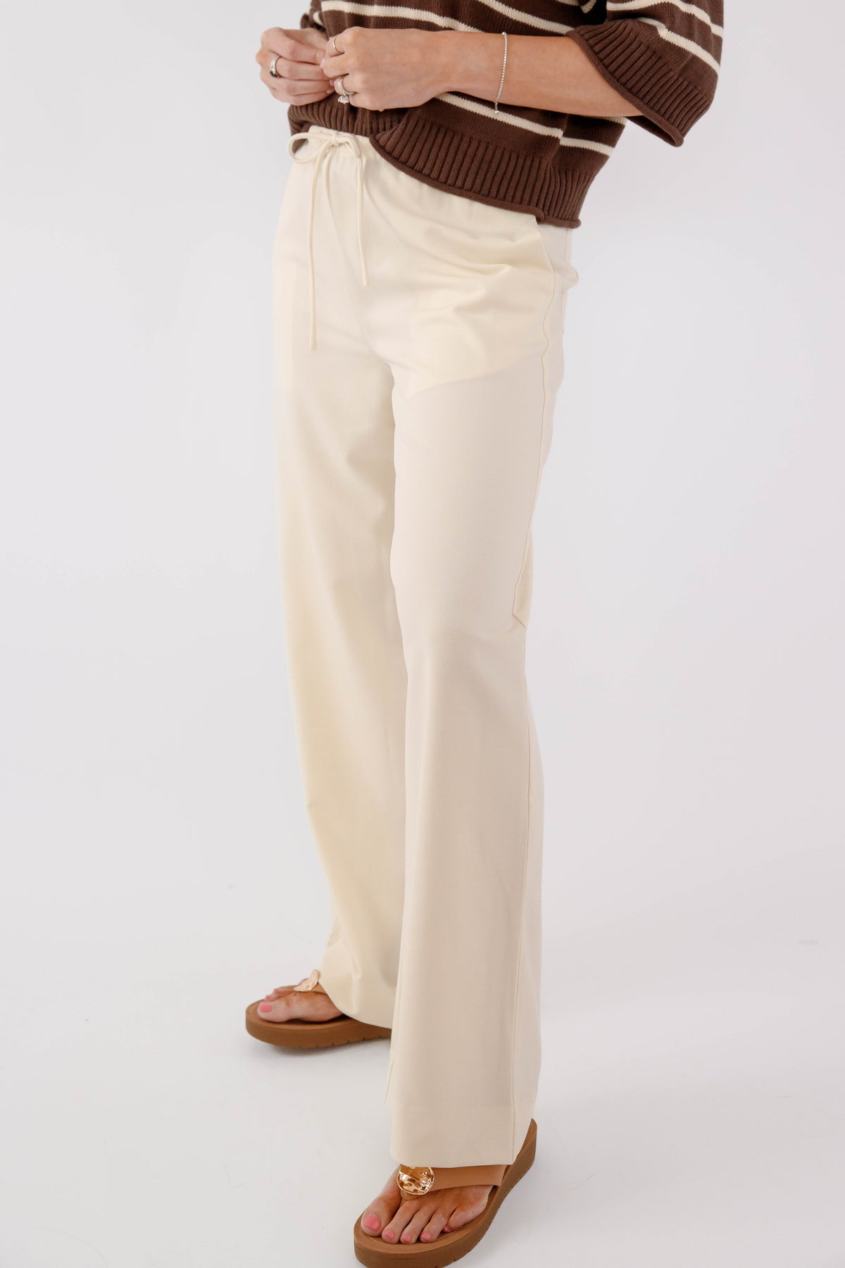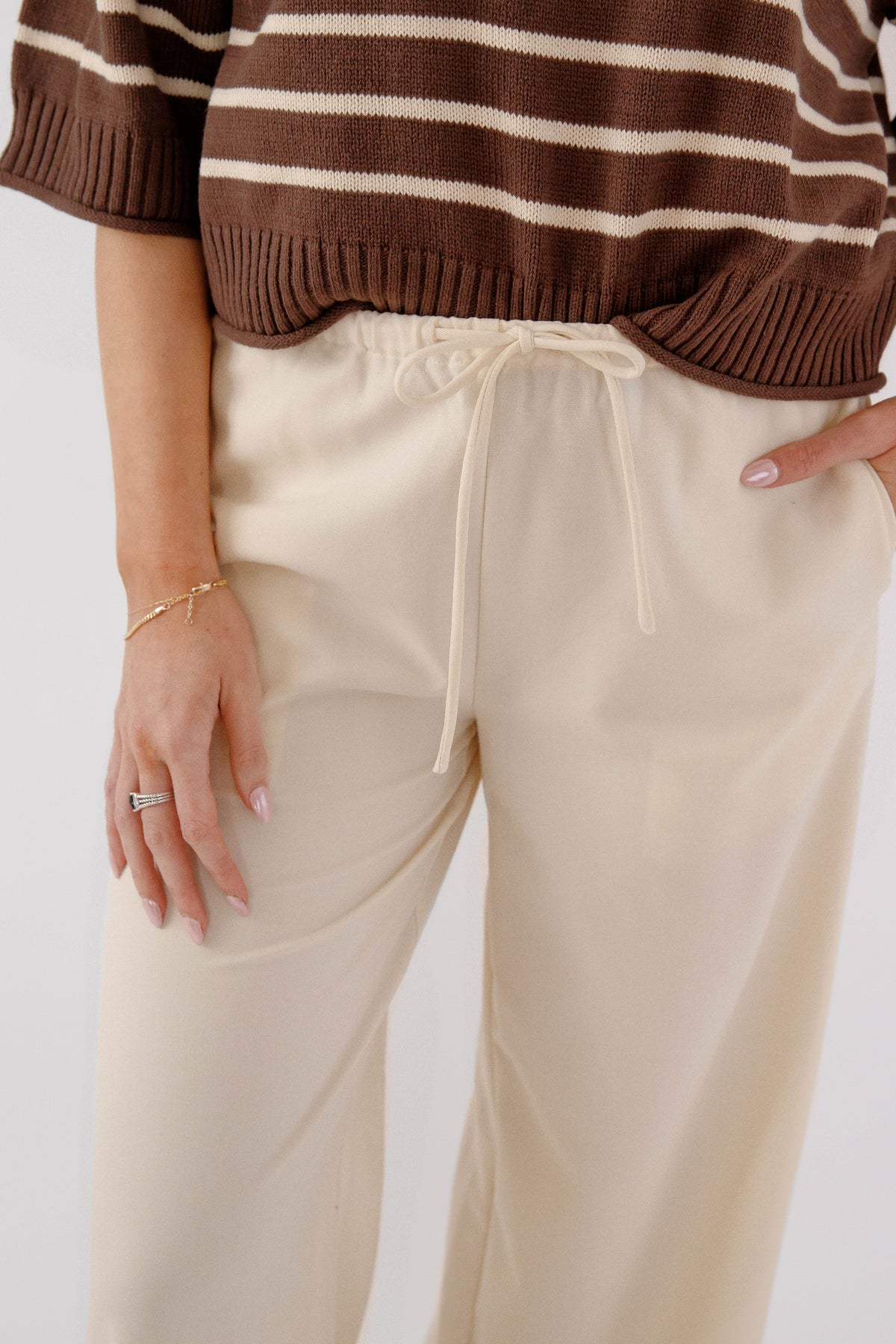 Effortless elegance meets everyday comfort in these cream wide leg pants. Designed with a flattering wide-leg silhouette, they feature a functional front and back pockets for practicality, paired with an elastic waist and drawstring for a customizable fit. Perfect for dressing up or down, these versatile pants transition seamlessly from office to weekend outings. Pants do have a drawstring to tighten if needed. Waist measurements provided are from pants not synched in or stretched out. There is plenty of flexibility in sizing!